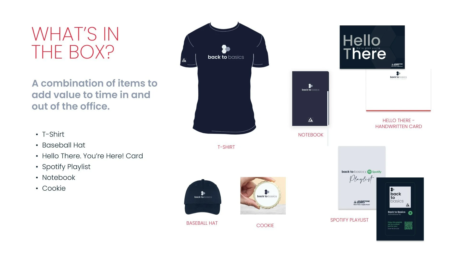 The organization has been rapidly growing the customer base, too fast for employees to not feel burnout. Back to Basics is an opportunity to nurture people from within, so that they can continue to service and delight the customer. An idea became a concept, and a concept became a box.